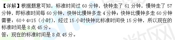 7、一个快钟每时比标准时间快1分,一个慢钟每时比标准时间慢3分。将两个钟同时调到标准时间,结果在24时内,快钟显示9点整时,慢钟恰好显示8点整。此时的标准时间是多少?