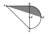 6、等腰直角三角形ABC中,D是半圆周的中点,P是BC的中点,BC为半圆直径,已知AB=BC=10,求阴影面积。(л取3)