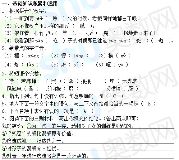 考试试题下载请点击>>南雅坑班2012年秋季班第二期语文结业试卷(A)