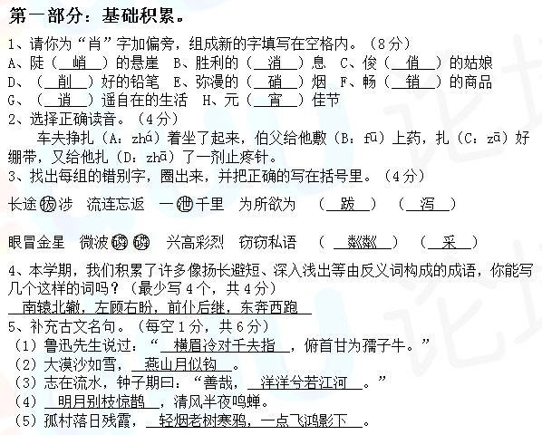 2012.12.23南雅小升初秋季班语文试卷及答案