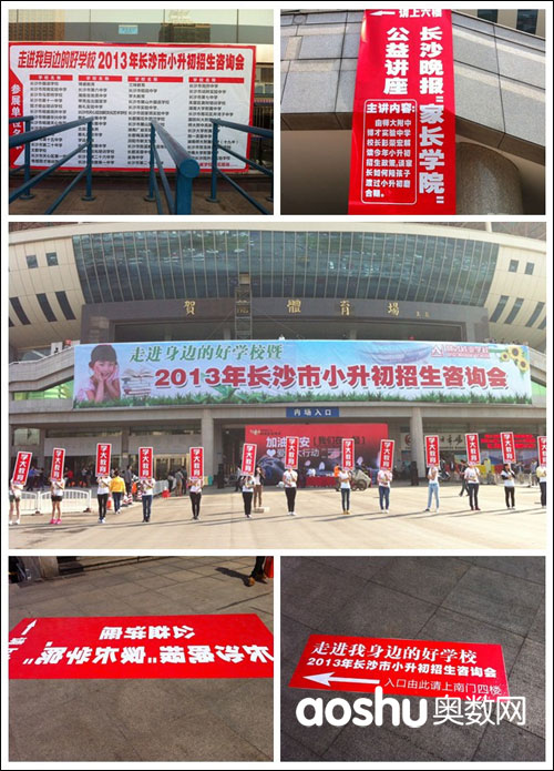 此次,长沙小升初的招生咨询会,相对往年组织得更加的成熟。来到贺龙体育馆前就有句型的引导横幅,在去会场的路上,墙上也随处可见会场的指引路线。而此次小升初招生咨询会出了各大中学以外,培训机构也是咨询会上的一个主导。各大培训机构在此次咨询会上也可谓是出尽法宝,对机构进行宣传和招生。