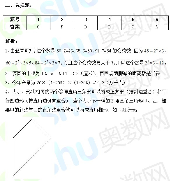 2013年博才小升初考试数学试卷及答案(暑假班) 长沙奥数网整理 2013-05-13 13:37:49 长沙奥数网:2013年博才小升初考试数学试卷及答案(暑假班)。 请下载附件: 2013年博才小升初考试数学试卷及答案(暑假班) 试卷下载 参考答案: 查看同场考试的其他试卷 2013年博才小升初考试语文试卷及答案(暑假班) 2013年博才小升初考试英语试卷及答案(暑假班) 编辑推荐:【升学】:博才中学小升初择校攻略 【真题】:博才小升初真题试卷汇总 首页 上一页 下一页 尾页
