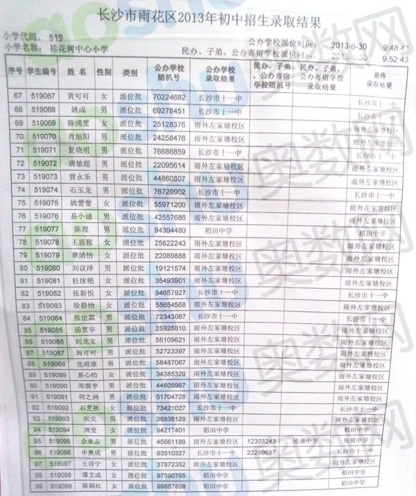 2013年桂花树中心小学小升初微机派位录取结果(4)