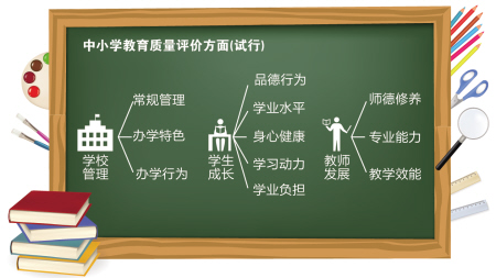 记者发现,这份“绿色评价”将改变以往“以成绩好坏论英雄”的评价方式,从学校的常规管理、办学特色、办学行为,学生的品德行为、学业水平、身心健康、学习动力、学业负担,教师的师德修养、专业能力、教学效能等11个标准对中小学教育质量进行评价。