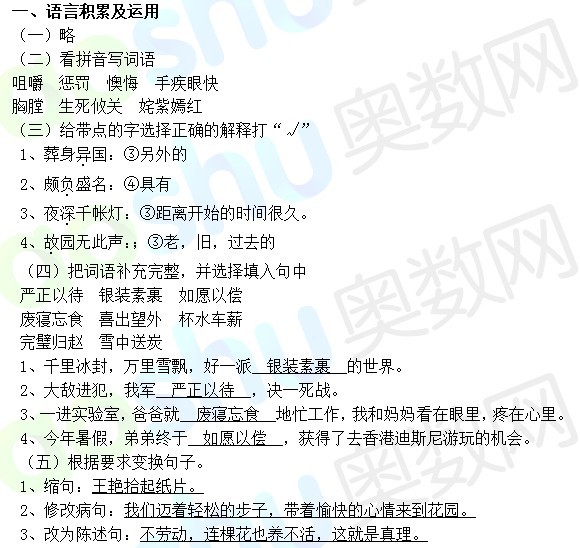 长沙奥数网:2013.7.26长郡小升初考试语文试卷及答案。
