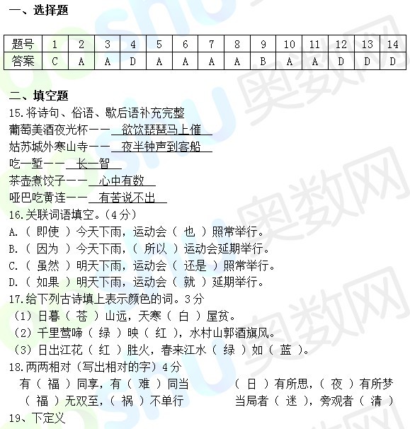 长沙奥数网:2013.8.13长郡小升初考试语文试卷及答案。