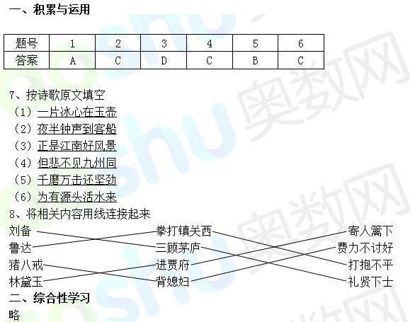 长沙奥数网:2013.7.25南雅小升初考试语文试卷及答案。