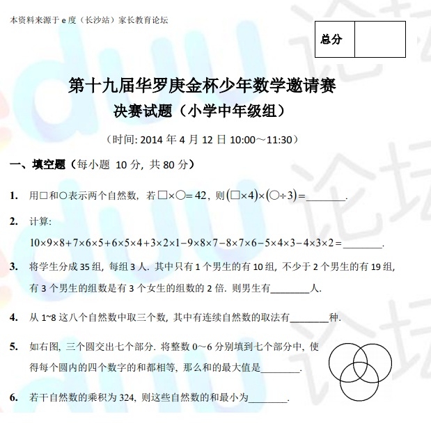点击下载试卷>>2014年第十九届华杯赛决赛试卷(小中组)B卷