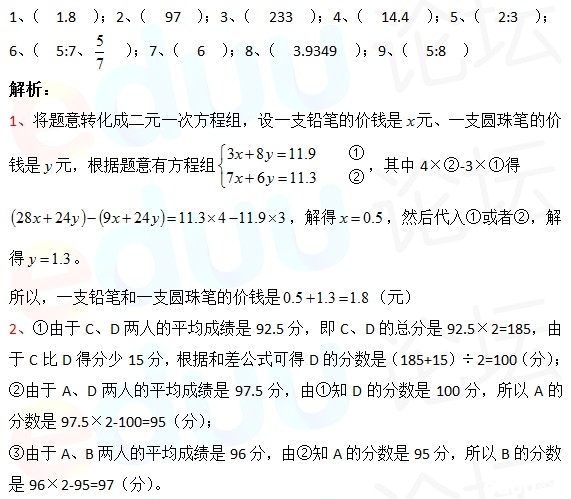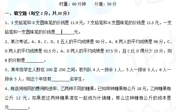 【查看原帖并参与讨论:2014.4.26长郡双语小升初数学试卷及答案】
