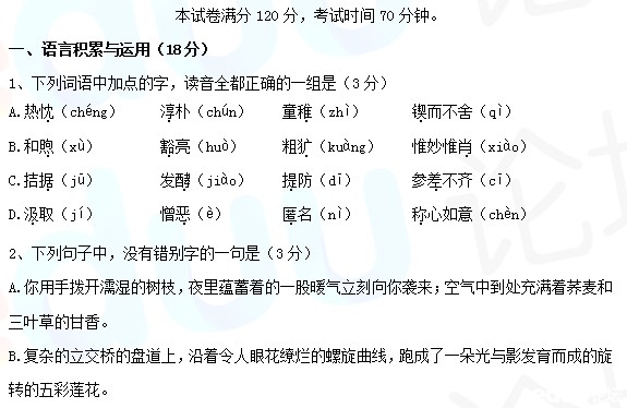 下载完整试卷>>2014年长沙雅实小升初语文试卷(2014.4.26)