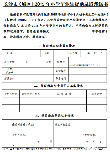 长沙奥数网:2015年长沙小升初进行时,下面是提前录取承诺书,五年级的家长来观摩一下,希望来年择校的孩子们都能签一份,供各位家长参考。
