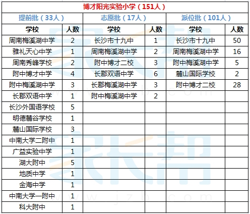 2015年长沙博才阳光实验小学小升初微机派位结果