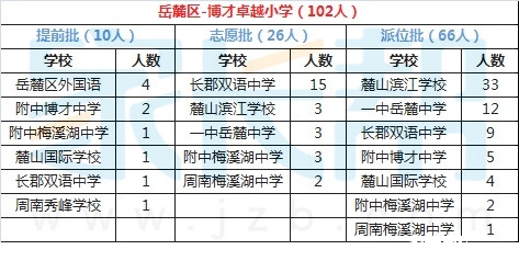 2015年长沙岳麓区博才卓越小学小升初微机派位结果