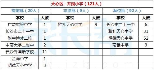 2015年长沙井岗小学小升初微机派位结果