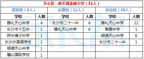 2015年长沙仰天湖金峰小学小升初微机派位结果