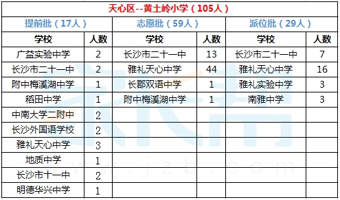2015年长沙黄土岭小学小升初微机派位结果