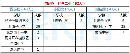 2015年长沙红星二小小升初微机派位结果
