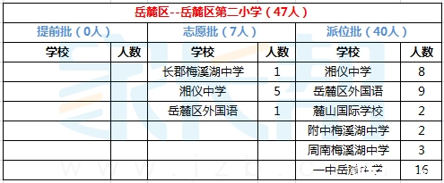 2015年长沙岳麓区第二小学小升初微机派位结果