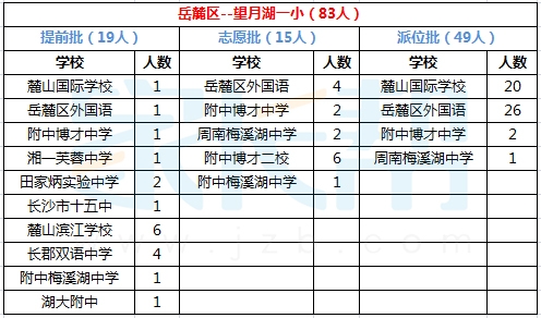 2015年长沙望月湖一小小升初微机派位结果