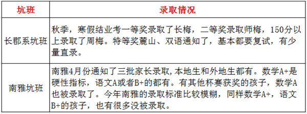 今年麓山、南雅的微机派位指标增多,提前批名额有所减少,所以学校在坑班的录取标准也提高了。往年长郡系坑班一等奖会有麓山、双语的面试机会,今年只接到了长梅的录取电话。南雅今年的录取,数学A+基本也成了硬性要求。南雅今年在新时代的录取标准比较模糊,相同分数有的孩子被录取,有的孩子没被录取。另外,雅实也参考了新时代阳光(已改名执舜培训学校)的结业考成绩,主动邀请数学A+,语文A的部分牛蛙去学校投简历。