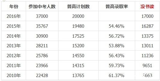 2016年的参考人数是根据今年教育局公布的生地会考人数推算的(2015生地会考人数就是2016参加中考的),已经比今年还要多。再加上学校招收的插班生(每年都起码1500+),还有外地回长生等等。预测明年的中考参考人数要达到37000+,如果招生数为20000(今年各校的招收人数应该非常满额了),明年的录取率和今年持平的话,将有1.7W的孩子没有普高读。真是一个触目惊心的数据!