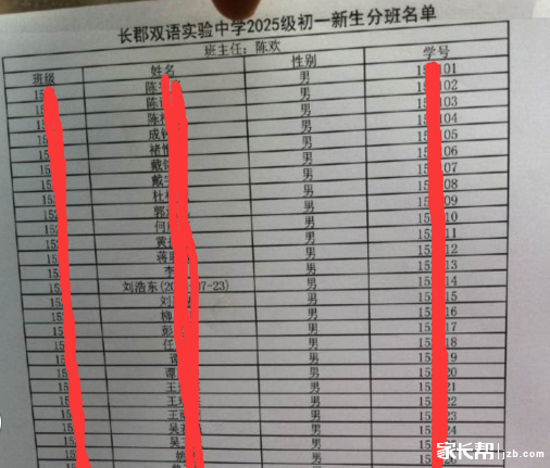 “蔷薇花”:学校把2015级初一新生打成2025级了,这个可以忽略;重点看看学好和姓氏吧,学号其实是按姓氏排列的,跟分班考试成绩没啥关系。