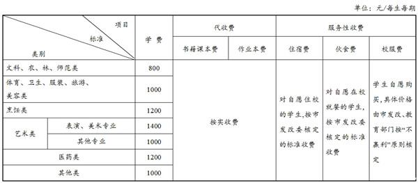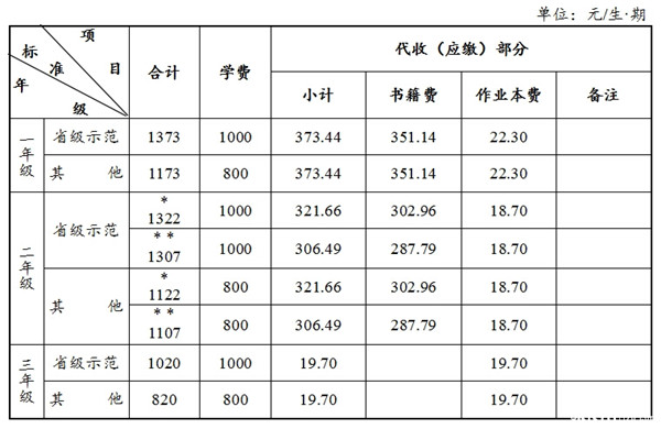 注:国家级重点中等职业学校收费标准可上浮20%;省级示范性中等职业学校收费标准可上浮15%。同时具备国家级和省级重点中专资格的,不得重复上浮。