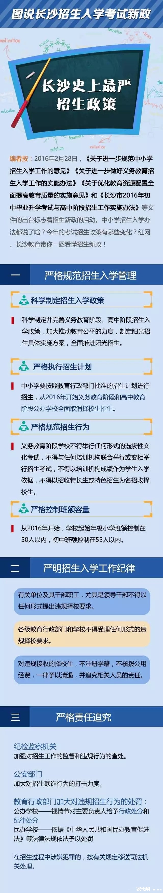 长沙奥数网:2016年长沙市中小学招生入学政策新闻发布会于近日召开。《关于进一步规范中小学招生入学工作的意见》共计约1700多字,其中就有11处“严”字,被称为“史上最严招生入学政策”。
