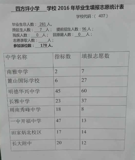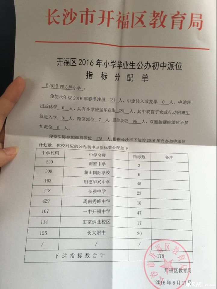 2016长沙开福区四方坪小学小升初微机派位指标