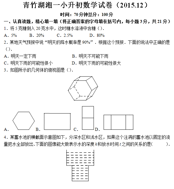 2016年长沙青竹湖湘一小升初数学真题及答案 长沙家长帮 2016-09-20 15:41:17 长沙奥数网:青竹湖湘一2016小升初数学真题及答案,2015年12月份考试的。 点击查看>>2016年长沙青竹湖湘一小升初英语真题及答案 首页 上一页 下一页 尾页