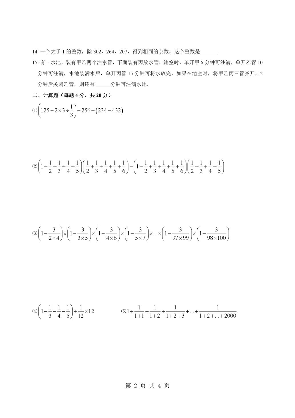 小学1-6年级奥数练习题整理汇总