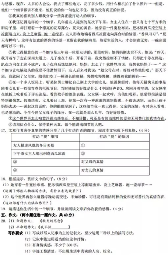 2017年长沙雅礼系坑班秋季结业考语文试卷(4)