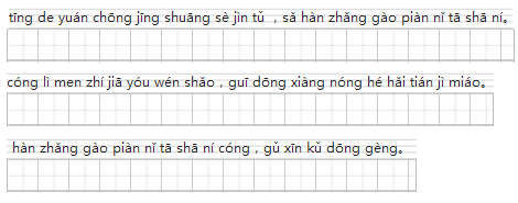 4、鹅,鹅,鹅,曲项向天歌。( )( )浮绿水,红掌拨清波。