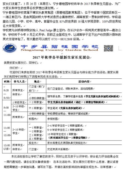 2017年宁乡碧桂园学校新生家长见面会