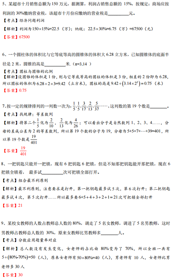 小学1-6年级奥数类型例题讲解整理汇总