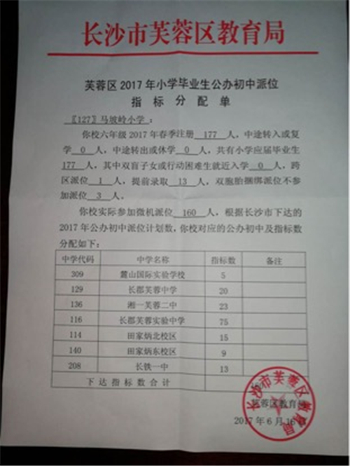2017年长沙马坡岭小学小升初微机派位指标 家长帮长沙站 2017-06-16 20:32:49 2017年长沙马坡岭小学小升初微机派位指标 编辑推荐: 2017年长沙各校小升初微机派位指标汇总 2017长沙小升初微机派位志愿填报注意事项 长沙微机派位到底是怎样的操作方式?