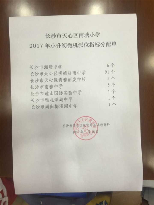 2017年长沙南塘小学小升初微机派位指标 家长帮长沙站 2017-06-16 20:34:45 2017年长沙南塘小学小升初微机派位指标 编辑推荐: 2017年长沙各校小升初微机派位指标汇总 2017长沙小升初微机派位志愿填报注意事项 长沙微机派位到底是怎样的操作方式?
