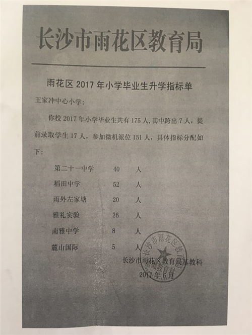 2017年长沙王家冲小学小升初微机派位指标 家长帮长沙站 2017-06-16 20:50:08 2017年长沙王家冲小学小升初微机派位指标 编辑推荐: 2017年长沙各校小升初微机派位指标汇总 2017长沙小升初微机派位志愿填报注意事项 长沙微机派位到底是怎样的操作方式?