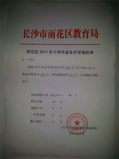 2017年长沙五一小学小升初微机派位指标 家长帮长沙站 2017-06-16 20:51:47 2017年长沙五一小学小升初微机派位指标 编辑推荐: 2017年长沙各校小升初微机派位指标汇总 2017长沙小升初微机派位志愿填报注意事项 长沙微机派位到底是怎样的操作方式?