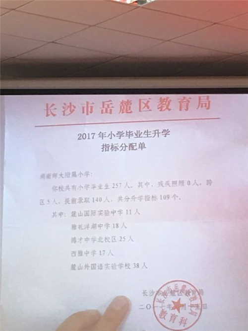 2017年长沙湖师大附属小学小升初微机派位指标