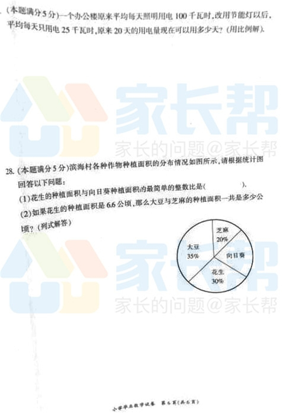 2017年长沙小学毕业考试数学试卷(6)
