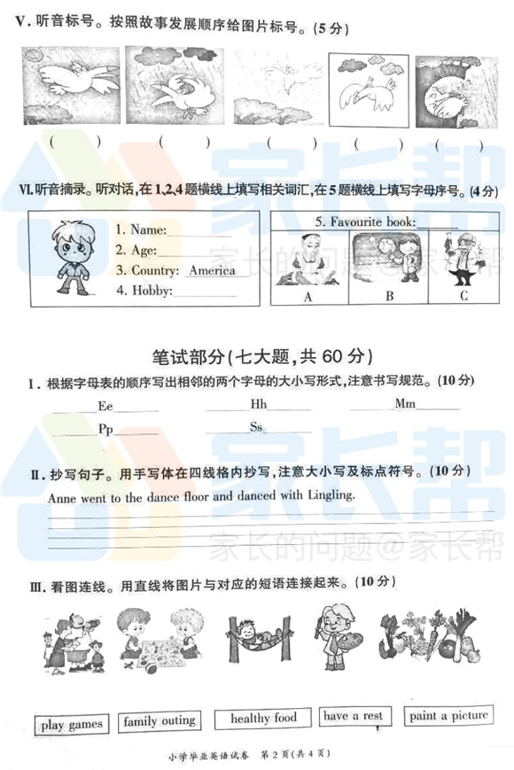 2017年长沙小学毕业考试英语试卷(2)