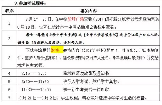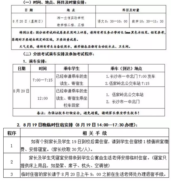为了你能顺利参加长沙市教育局统一组织的初一新生分班考试,并完成新学期开学报到工作,现将有关事项告知如下,希望你按照通知做好充分准备。