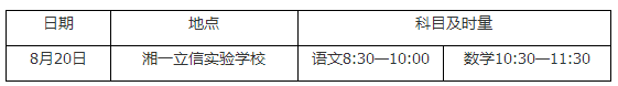 2017年长沙湘一立信初一分班考试考场查询