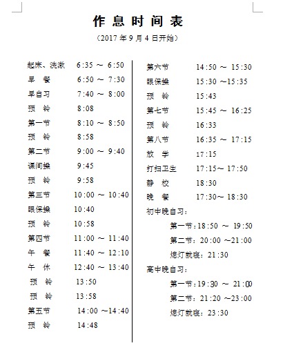 长郡培粹最新作息时间表,有兴趣的家长看看。