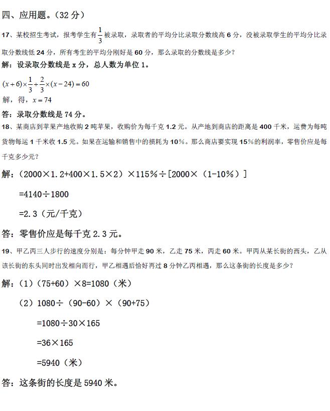 2017.10.08长郡培粹小升初数学试卷答案(4)