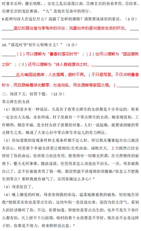 2017.10.08长郡培粹小升初语文试卷答案(3)