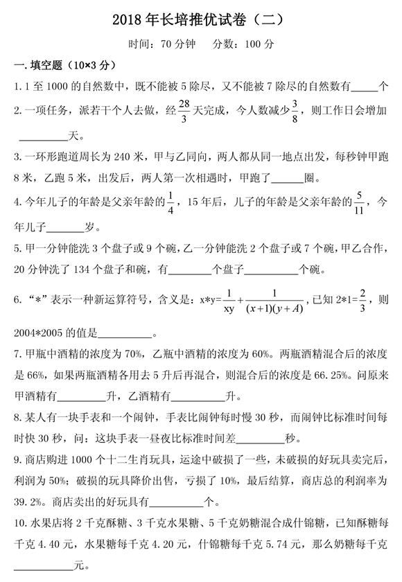 2017.9.16长郡培粹小升初推优数学试卷
