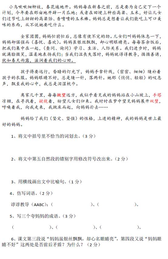2017.10.7长沙青竹湖湘一小升初语文试卷(3)