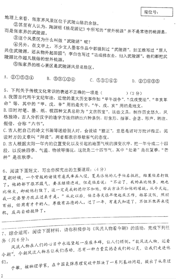 2017.10.28长沙湘郡郡维小升初语文试卷(2)